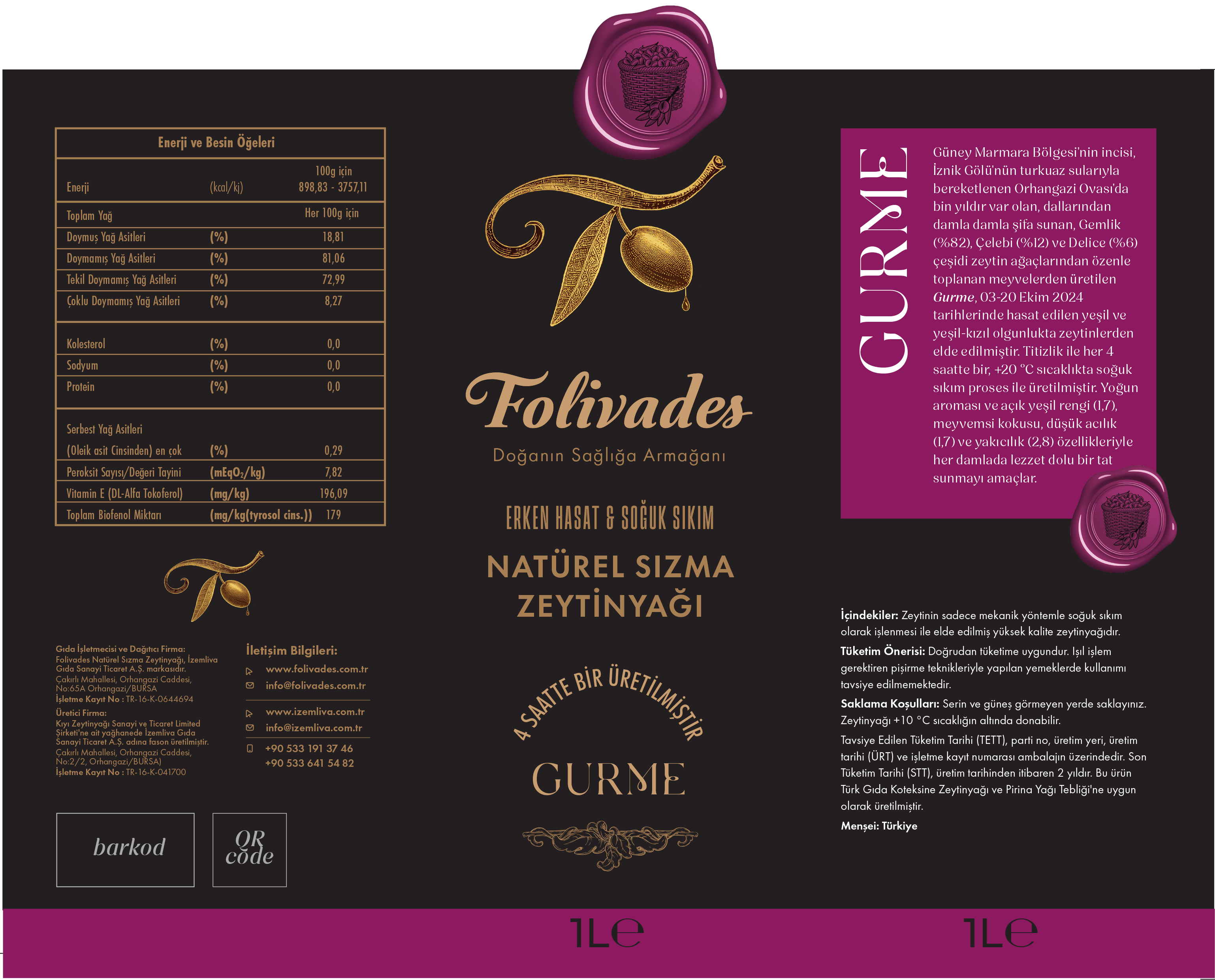 İznik Gölü'nün sularıyla bereketlenen Orhangazi Ovası'nda, yüzyıllardır dallarından damla damla şifa sunan Gemlik (%82), Çelebi (%12) ve Delice (%6) çeşidi zeytin ağaçlarından özenle toplanan meyvelerden üretilen Gurme, 03-20 Ekim 2024 tarihlerinde hasat edilen yeşil zeytinlerden elde edilmiştir. Titizlik ile her 4 saatte bir, +20 °C sıcaklıkta soğuk sıkım proses ile üretilmiştir. Yoğun yeşil rengi (1,7), meyvemsi kokusu, düşük acılık (1,7) ve yakıcılık (2,8) özellikleriyle her damlada sağlık dolu bir tat sunmayı amaçlar.